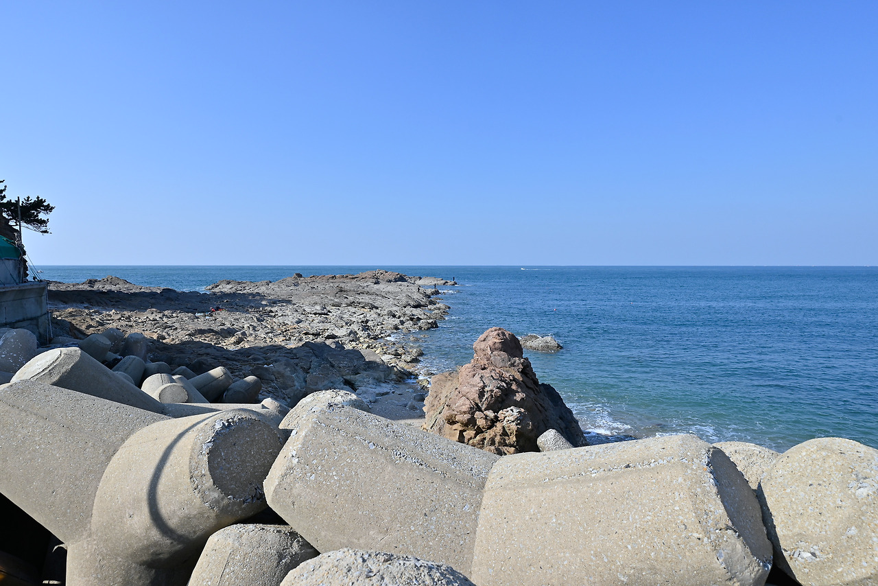 해식동굴을 조금 지나면 해벽길을 따라 갯바위가 길게 이어지는데